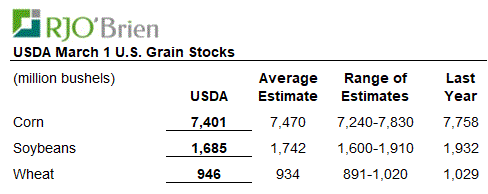 Pour ce qui est des inventaires (stocks) en date du 1er mars, ils sont sorti un peu plus serré que prévu. Surtout pour les fèves. Je ne pense pas que ça change la dynamique du marché de A à Z, mais il y en a moins pareil. Un peu moins.
