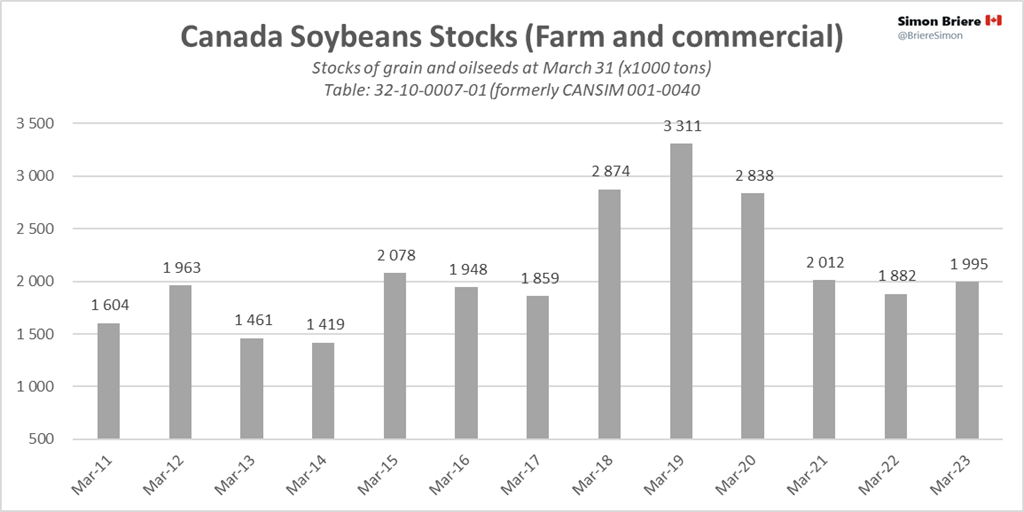 - StatsCan : Stocks des principales grandes cultures, 31 mars 2023