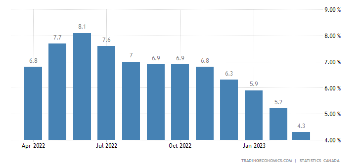 Calendrier économique plutôt léger pour cette semaine, je surveille principalement l’inflation au Canada demain matin (8.30AM). On s’attend à un rythme d’augmentation du cout de la vie de 4.1%. On est sur la bonne voie, mais il reste encore beaucoup de chemin avant de revenir à 2%, soit la cible de la Banque du Canada.
