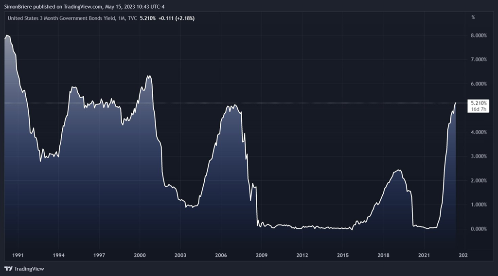 Ensuite prenons le taux court terme (3 mois) à 5.20%