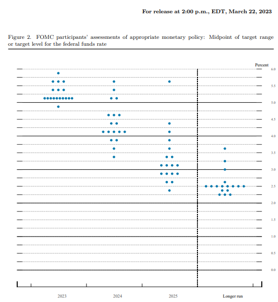 Donc les taux d’intérêts « higher for longer ». Higher = je pense que c’est atteint – j’ai pas l’impression que les taux ont besoin de monter encore plus. Longer = reste à patienter et faire le traitement au complet. Baisser les taux « trop rapidement » aurait un impact désastreux sur l’inflation. La réserve fédérale américaine (FED) prévoit une baisse des taux seulement en 2024, et pas une grosse baisse. De 5% à 4%, soit beaucoup plus élevé que les 20 dernières années.