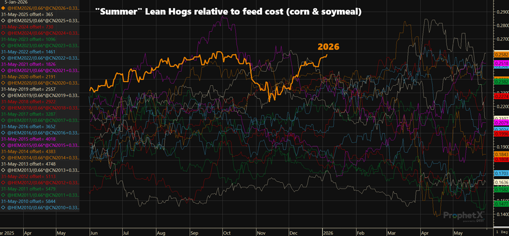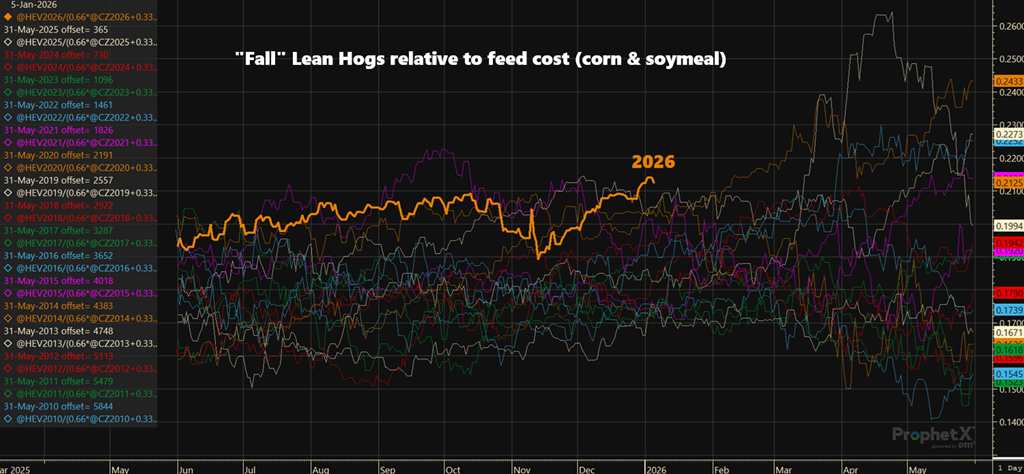 A good start of the year for summer and fall 2026 prices. Relatively good prices for hogs, and relatively cheap grain prices.