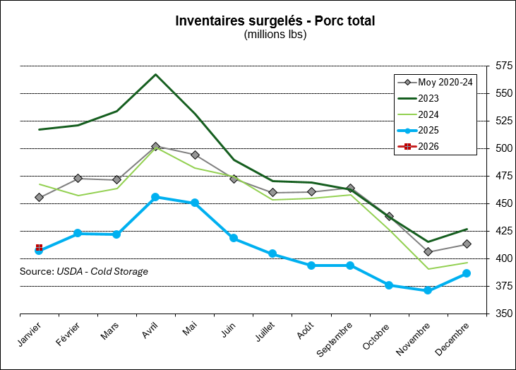 Même le Cold Storage commence l’année avec des inventaires de viandes similaires à janvier 2025.