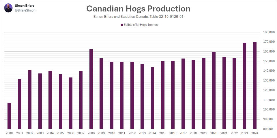 En résumé, la baisse du cheptel au Québec est clairement observable et s’inscrit dans une transformation plus large de l’industrie. Elle contraste avec une certaine expansion observée en Ontario et surtout au Manitoba, où les conditions économiques et structurelles favorisent la croissance. Cette divergence régionale illustre bien la réalité actuelle du porc nord-américain : une industrie toujours cyclique, mais de plus en plus disciplinée, où la gestion de l’offre, la localisation des coûts et la création de valeur deviennent des facteurs déterminants de compétitivité.