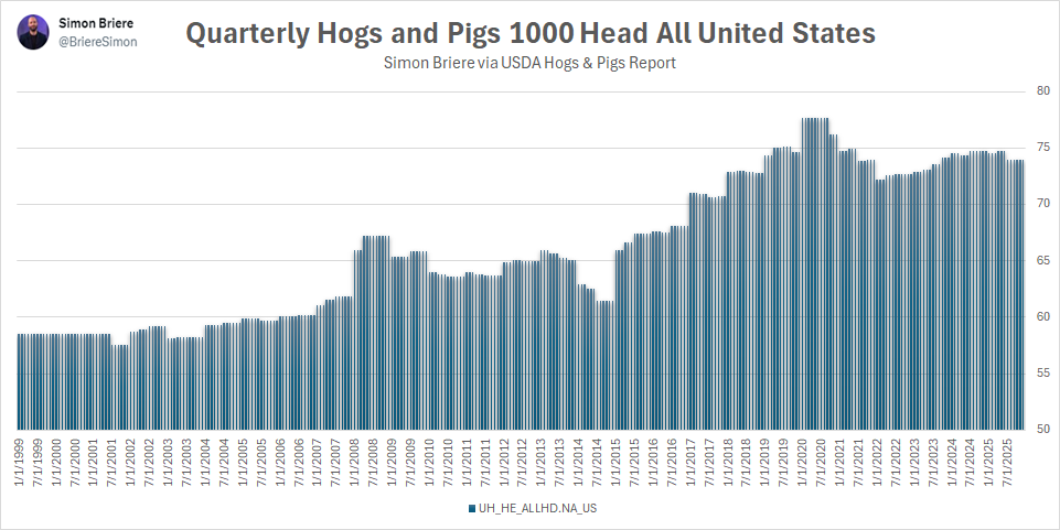Aux États-Unis, le portrait confirme également l’idée d’un plateau structurel. L’inventaire porcin total oscille autour de 74 à 75 millions de têtes depuis la pandémie, bien en dessous du sommet proche de 79 millions observé en 2018-2019 lorsque la demande chinoise avait explosé. Cette stabilisation suggère que les producteurs américains, tout comme leurs homologues canadiens, privilégient une approche plus prudente face au cycle. L’expansion agressive des troupeaux, qui avait caractérisé certaines périodes des années 2000 et 2010, semble moins probable dans l’environnement actuel.
