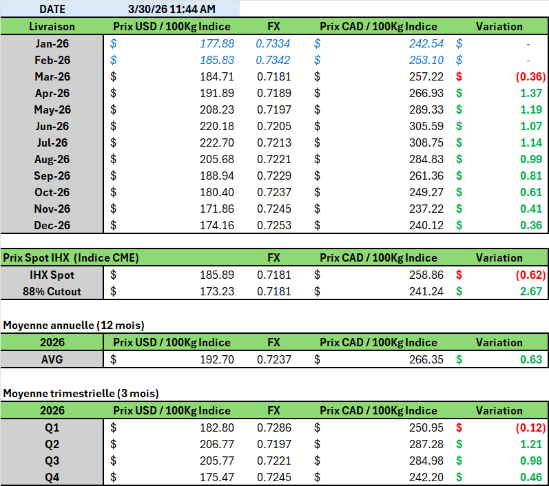 Le contenu et les opinions exprimés dans le présent commentaire sont uniquement ceux de l'auteur(s) et ne sont pas nécessairement partagés par R.J. O'Brien & Associés Canada Inc. Les données et observations présentées ici ne sont fournies qu'à titre informatif et ne doivent pas être interprétées comme une indication ou garantie de rendement futur des marchés concernés. Le risque de perte dans les contrats à terme ou les options sur marchandises peut être important et ne convient pas à tous les investisseurs. Contactez votre représentant de compte pour plus d'informations sur ces risques. Les informations et les opinions contenues dans le présent document proviennent de sources jugées fiables, mais ne sont pas garanties quant à leur exactitude ou leur exhaustivité. Veuillez examiner soigneusement votre situation financière avant de prendre des décisions de transaction. R.J. O'Brien & Associés Canada Inc. est membre de l’Organisme canadien de réglementation des investissements (OCRI) et du Fonds canadien de protection des investisseurs (FCPI).