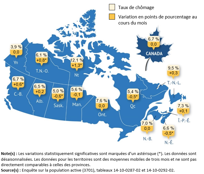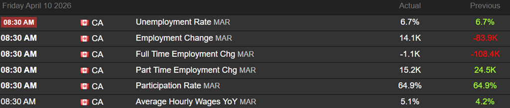 Les chiffres de l’emploi au Canada pour mars envoient un message mitigé, mais pas alarmant. D’un côté, le taux de chômage reste stable à 6.7 %, ce qui suggère que le marché du travail cesse de se détériorer après la faiblesse observée en février. De l’autre, on note tout de même une création nette de 14 100 emplois, surtout grâce au temps partiel (+15 200), alors que le temps plein recule légèrement (-1 100). Autrement dit, ce n’est pas un rapport “boom”, mais plutôt un marché qui se stabilise sur un plateau plus mou. La participation reste inchangée à 64.9 %, donc pas de faux signal provenant d’un retrait massif de travailleurs.