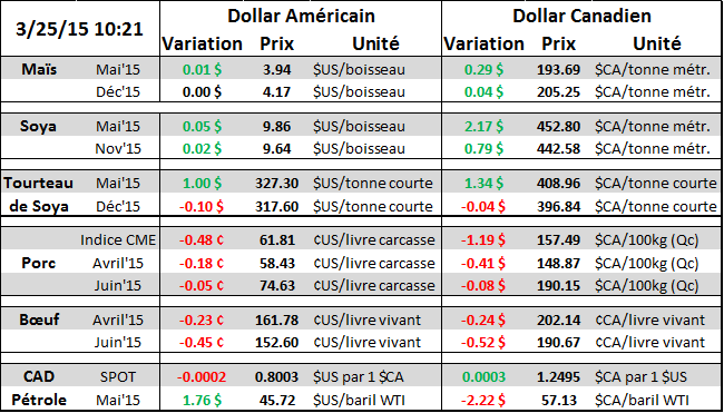 · Inventaires de maïs à 7.609 milliards de boisseaux, comparativement à 7.008B l’an dernier (+8.5%)