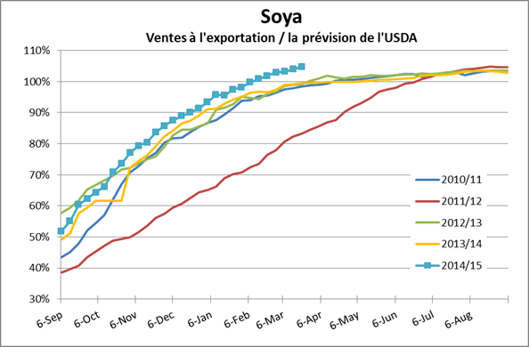Graphique 2 – Progression des ventes à l’exportation de soya