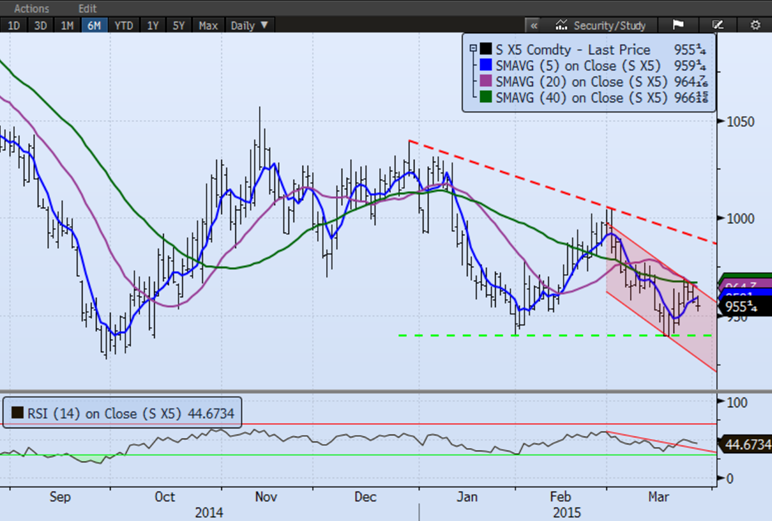Soya de nov'15 (¢US/boisseau) = Neutre / négatif