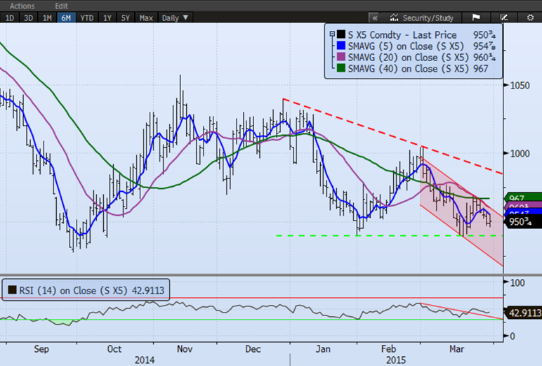 Soya de nov'15 (¢US/boisseau) = Négatif