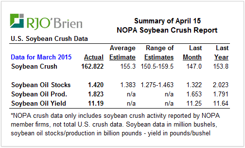 - NOPA: trituration de soya record en mars à 162.8M boisseaux, au-dessus des estimés