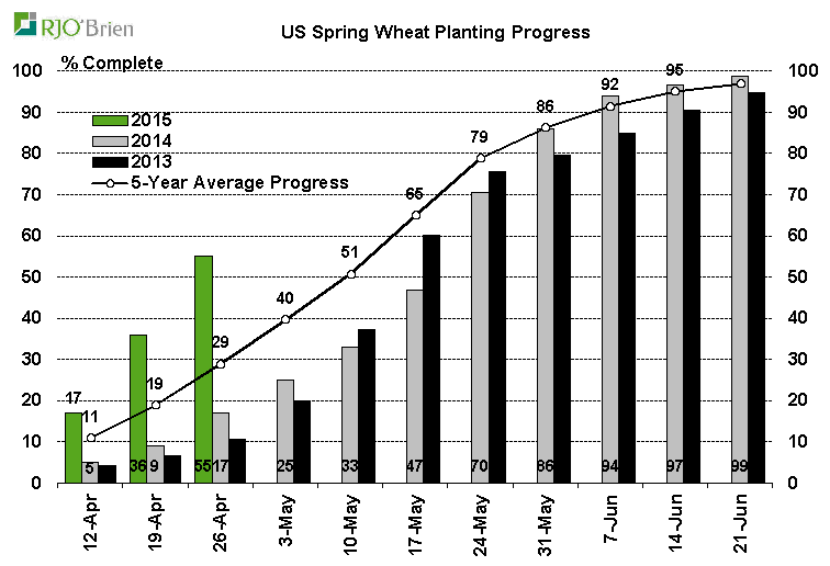 · Excellent départ pour les semis de blé printemps avec déjà 55% de complété.