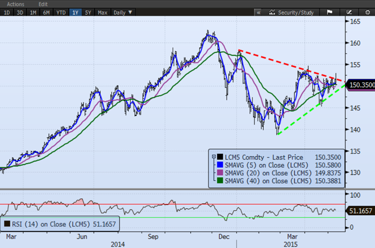 Bœuf juin'15 (¢US/lb vivante) = Neutre