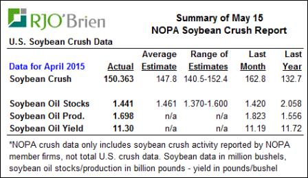· En avril, la quantité de soya triturées était de 150.4M de boisseaux, un record pour ce mois