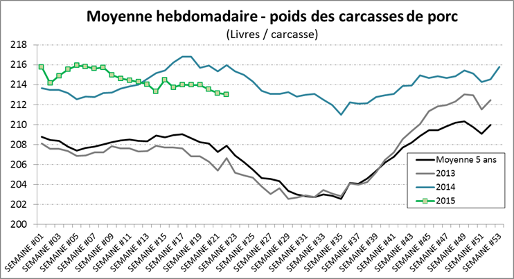Graphique 3 – Poids moyen des carcasses de porc