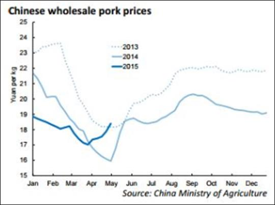 · Le prix en gros du porc en Chine commence à monter depuis avril, suite à la baisse de la production chinoise