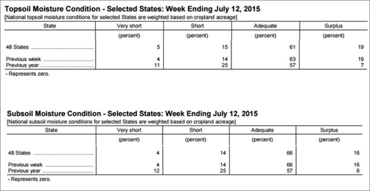 Source : USDA – Crop progress report