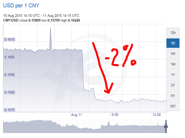 · La Chine dévalue leur monnaie (Yuan) face au dollar américain