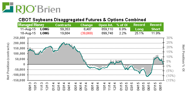 Soja : Les spéculateurs ont vendu 39,669 contrat et options afin de réduire le net long à 19,684