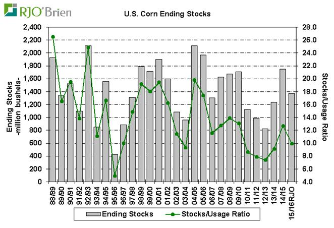 · Maïs : carry 2015/16 en baisse de 121M à 1.592 milliard.