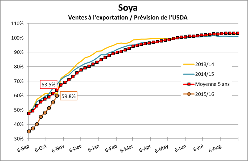 · Très fortes exportations de soja, bien au-delà des attentes, ils rattrapent le retard.