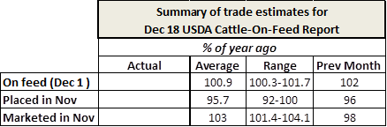 · Prévision Cattle-On-Feed demain : On-Feed: 100.9% Placed: 95.7% Marketed: 103.4%