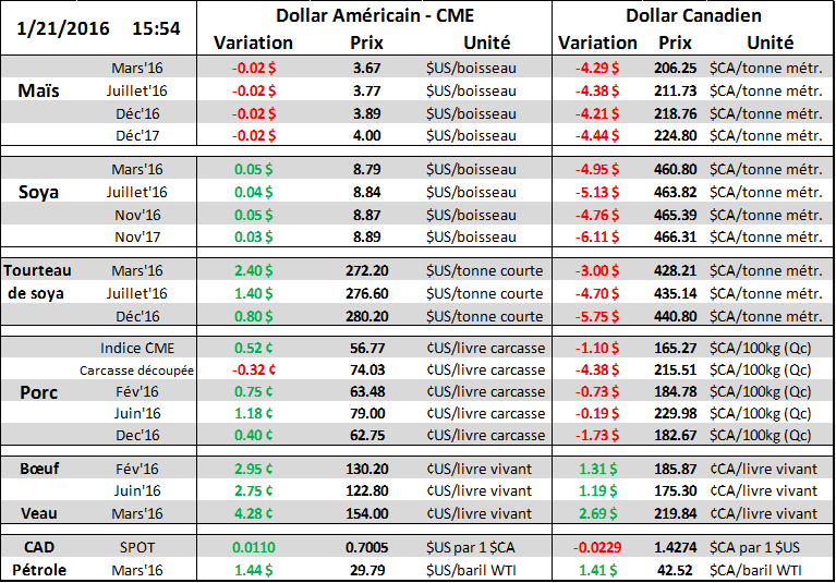· Bœuf : Le rapport Cattle-on-feed éclairera le marché qui est hésitant en ce moment.