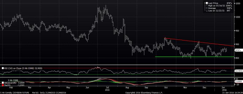 · Soya: toujours emprisonné entre 8.50 et 9.00, alors que la tendance du tourteau demeure baissière