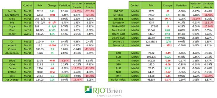 Le contenu et les opinions exprimés dans le présent commentaire sont uniquement ceux de l'auteur(s) et ne sont pas nécessairement partagés par R.J. O'Brien & Associés Canada Inc. Les données et observations présentées ici ne sont fournies qu'à titre informatif et ne doivent pas être interprétées comme une indication ou garantie de rendement futur des marchés concernés. Le risque de perte dans les contrats à terme ou les options sur marchandises peut être important et ne convient pas à tous les investisseurs. Contactez votre représentant de compte pour plus d'informations sur ces risques. Les informations et les opinions contenues dans le présent document proviennent de sources jugées fiables, mais ne sont pas garanties quant à leur exactitude ou leur exhaustivité. Veuillez examiner soigneusement votre situation financière avant de prendre des décisions de transaction. R.J. O'Brien & Associés Canada Inc. est un membre de l' Organisme canadien de réglementation du commerce des valeurs mobilières (OCRCVM) et le Fonds canadien de protection des épargnants (FCPE).