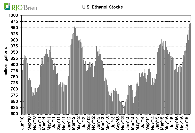 Avec les stocks d’éthanol à des niveaux très élevés et des marges de bénéfices sous pressions, il n’aurait pas été surprenant de voir un déclin similaire aux années passées.