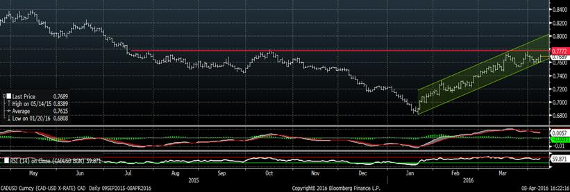 Ce matin, le Canada publiait les chiffres d’emploi qui ont pris tout le monde par surprise. Les attentes étaient de 10 000 nouveaux postes alors que la statistique est sortie à 40 600 jobs ! Sur ce chiffre, 35 300 sont des postes en temps pleins ce qui semble à priori bon, mais un peu moins lorsqu’on la combine avec la perte de 51 800 postes temps plein en février. Reste que la nouvelle était positive pour le Canada qui a vu son taux de chômage baisser de 0.2% à 7.1%. Le dollar a terminé la journée à la hausse, près de 0.77 $US par $CA, on est donc de retour au même taux qu’il y a une semaine. On a toujours pas percé la résistance de 0.78 depuis juillet 2015 (graphique 1).