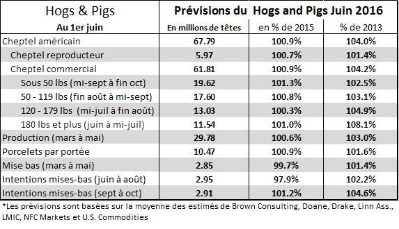 Voici la moyenne des estimés du rapport Hogs and Pigs de vendredi prochain (15h00) :