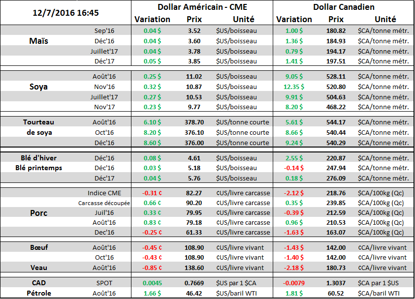 Déjà le 12 juillet! Le marché réagit positivement au rapport USDA :