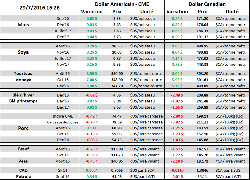 Au niveau des positions spéculatives (CFTC Commitment of Traders), les fonds de spéculation ont continué à vendre le grain.