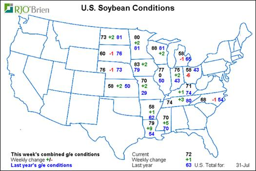 · Condition du soya : +1% à 72% bon/exc., c’est la meilleure condition depuis depuis 1994
