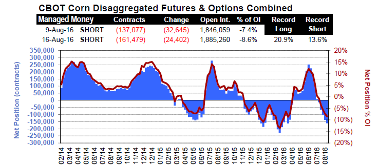 Position spéculative via CFTC Commitment of Traders en date du 16 aout (après le rapport USDA)