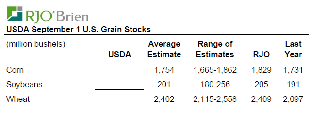 · Estimés rapport USDA sur les stocks de grain de demain midi 12h00