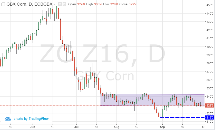 Maïs : La moyenne des prévisions est à 1.754 milliard de boisseaux, soit un inventaire presque identique à l’an passé. La force de l’exportation a été le principal moteur de la demande depuis le printemps. Le plus gros défi demeure la consommation du secteur animal – l’USDA est très optimiste à ce niveau avec une hausse de plus de 10% (quasiment 15% si j’inclus le blé) qui ne coïncide pas réellement avec la taille des cheptels américains. Demain c’est uniquement l’évaluation des stocks, à ne pas confondre avec le rapport offre-demande qui sera publié le 12 octobre. L’importance du rapport de demain est de savoir combien de boisseaux d’ancienne récolte sera reportés dans la nouvelle, et aussi nous informer sur les perspectives de la consommation. Un stock plus élevé signifie que la demande est molle et que le rapport du 12 octobre devra intégrer cette donnée dans les différentes catégories d’utilisation (principalement élevage, et en moindre mesure éthanol et export). Depuis deux semaines le marché se promène entre 3.29 et 3.42 avec très peu d’action. On surveille les bas à 3.15 et haut à 3.43 avant que le marché ne prenne une direction plus définitive.