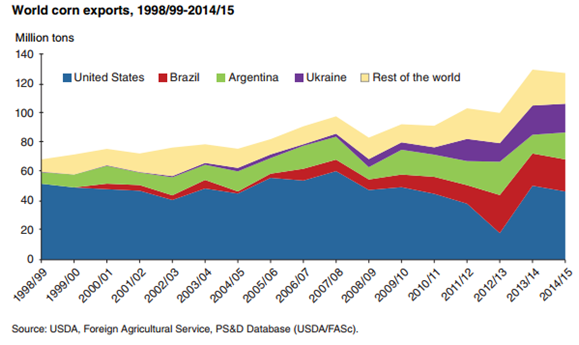 Par contre, même si les américains en produisent plus, le programme d’export Brésilien est prévu pour surpasser les USA avec 58MMT comparativement à 54MMT (WASDE septembre 2016 http://www.usda.gov/oce/commodity/wasde/latest.pdf)