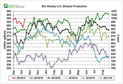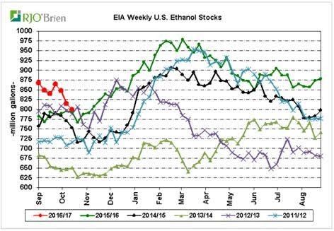 · Malgré la production d’éthanol de 998,000 barils/jour, les inventaires fondent