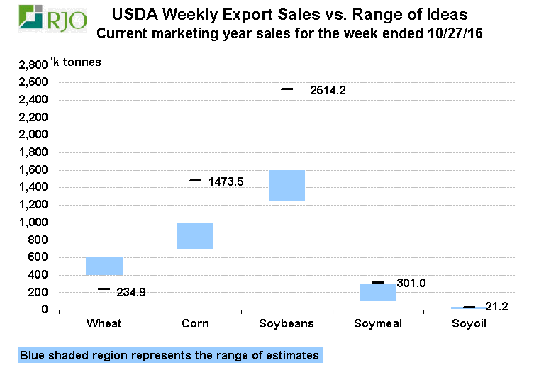 Corn : Solide semaine d’exportation, le rythme demeure très rapide malgré que la semaine dernière était décevante. Jusqu’à maintenant la destination la plus populaire demeure le Mexique avec 7 million de tonnes booké depuis le 1er septembre (28%) des exports totaux jusqu’à maintenant. L’effet « Trump » est assez évidement car les principaux acheteurs de corn américain sont le Mexique et le Japon et pour le moment les Mexicains sont très agressifs sur l’approvisionnement contrairement au Japonais. Comme dans le cas de la fève, il ne serait pas surprenant que l’USDA en profite pour augmenter la cible d’une autre 25 millions de boisseaux. Actuellement à 2.225 milliard.