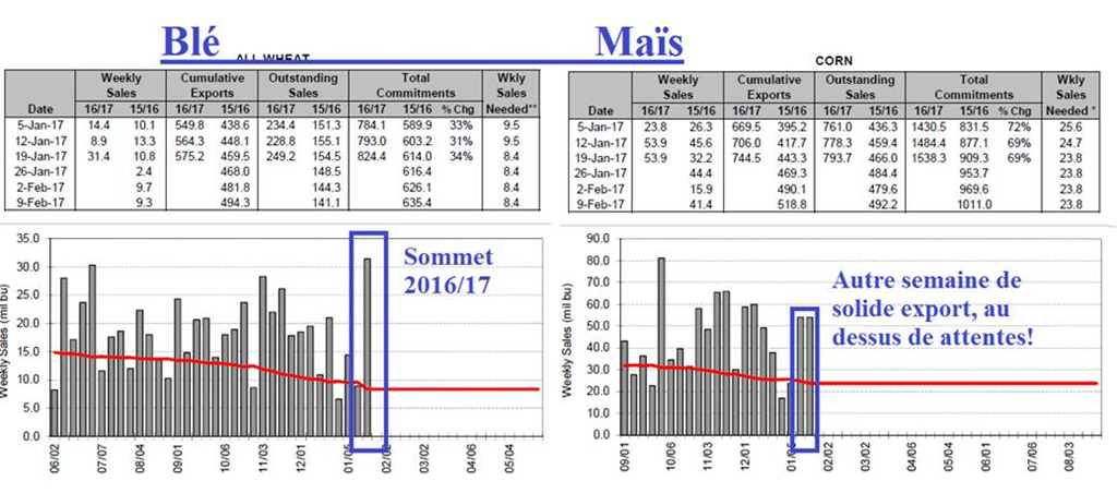 Statistique hebdomadaire d’exportation paru ce matin très solide, particulièrement dans le blé et le maïs!