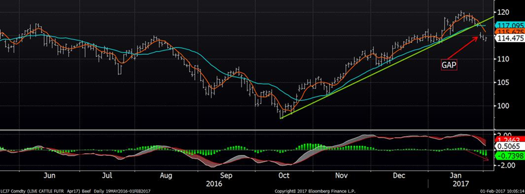 Tel que mentionné dans l'Agro-Lettre d'hier, le données venant du rapport sur l’inventaire du Cattle d’hier nous montrent un cheptel bovin américain plus gros qu’anticipé. Une des statistiques qui a été la plus surprenant est le nombre de génisses de 500 lbs et plus qui servent au remplacement des vaches-veau. On s’attendait à une baisse de production pour 2017 et finalement, c’est une hausse de production qui s’annonce alors qu’on a 1.25% de génisses qui mettront bas. C’est donc une 6e année consécutif avec une augmentation du nombre de génisses gardées pour la reproduction. Un coup les chiffres publiés, la question qui se pose toujours est à savoir si le marché avait déjà absorbé une partie de la nouvelle. On sait que les CàT de bœuf avaient diminué dans les derniers jours suite au rapport Cattle-on-feed de vendredi, mais est-ce que le rapport d’hier viendra peser encore plus lourdement sur les prix? Il semblerait que oui, les prix d’ouverture de ce matin bougent très peu jusqu’à maintenant sur les marchés, les CàT de février a ouvert à 115.40¢/lb, avril à 113.825¢/lb et juin à 103.95. Les prix des découpes étaient de 192.87¢/lb (-0.48) pour le Choice et 188.93 (0.00) pour le Select. Les CàT du veau d’embouche étaient à la baisse hier alors que le contrat de mars a terminé la journée à 122.78¢/lb (-1.12) et celui d’avril à 122.43¢/lb (-1.12).