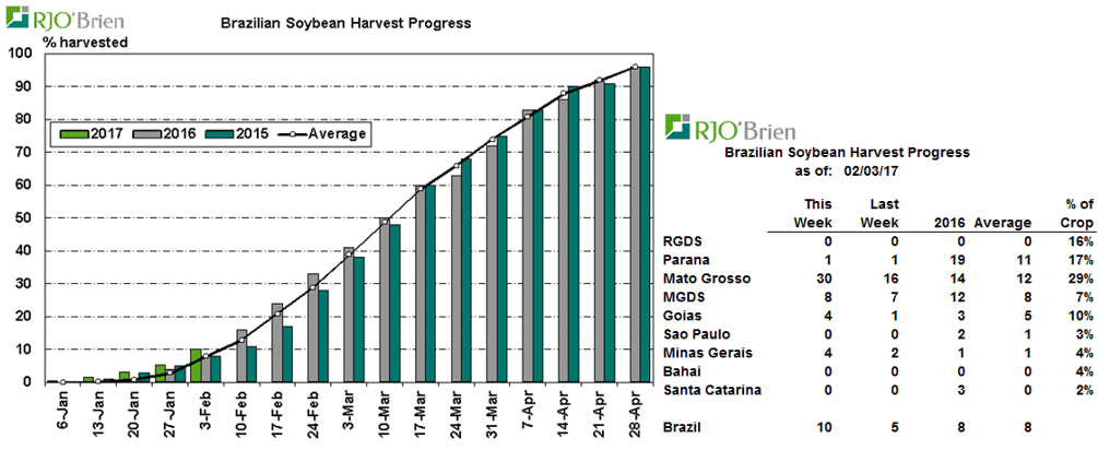 · La récolte brésilienne de soya continue d’être en avance sur la moyenne historique, particulièrement à Mato Grosso