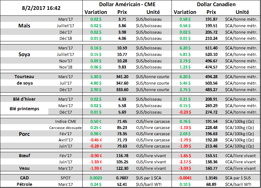 Demain midi, l’USDA publiera son rapport offre et demande des denrées agricoles. Bien qu’ils soient moins importants que le rapport de janvier, où l’USDA publiait les chiffres finaux de la production américaine, on portera une attention particulière aux prévisions de demande de grains ainsi que la production en Amérique du Sud. Plus tôt en matinée demain, CONAB publiera ses premières estimées officielles sur la production d’hiver au Brésil. Le marché s’attend à une récolte de 104 MTM de soya, l’augmentation de la production proviendrait des principaux états producteurs, notamment Mato Grosso, Rio Grande do Sul et Santa Catarina, avec un rendement national moyen de 46.6 boisseaux/acre. Pour la récolte de maïs au Brésil, les estimés sont de 87 MTM. Les chiffres de l’Argentine seront aussi à surveiller pour connaître ce que l’USDA pense des dommages au nord du pays suite aux inondations durant les semis.