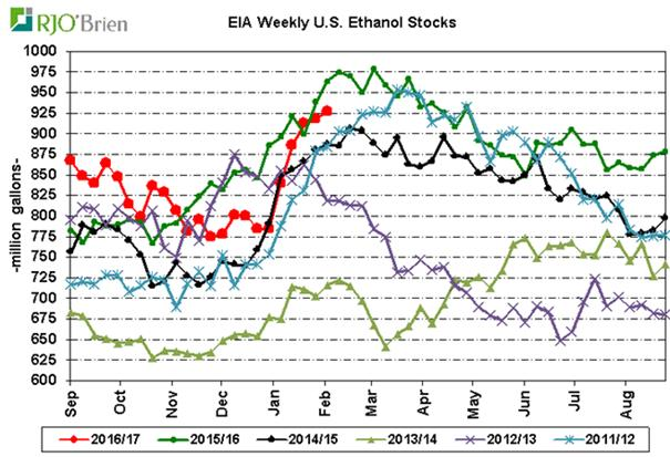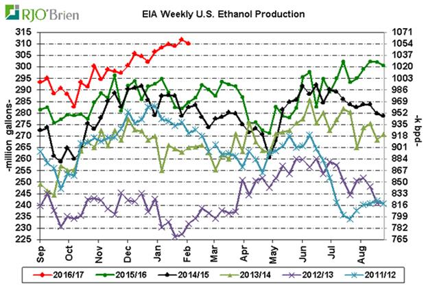 · Production d’éthanol à 1.055 million de barils/jour et les stocks montent légèrement
