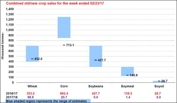 Il n’y avait pas seulement le CAD qui reculait aujourd’hui, c’était également le cas pour le complexe des grains. Premièrement, les ventes à l’exportation de la semaine dernière étaient un peu décevantes. Pour le maïs, il s’est vendu 713,100 tonnes (692,400 tonnes pour l’ancienne récolte et 20,700 pour la nouvelle) ce qui est en-dessous de la fourchette des estimés de 850,000 à 1,250,000 tonnes. Pour le tourteau et le blé, le résultat des ventes étaient dans le bas de la fourchette avec 140,900 tonnes et 452,000 tonnes respectivement. Pour la fève soya, les ventes totalisaient 427,700 tonnes ce qui un peu sous la médiane des estimés.