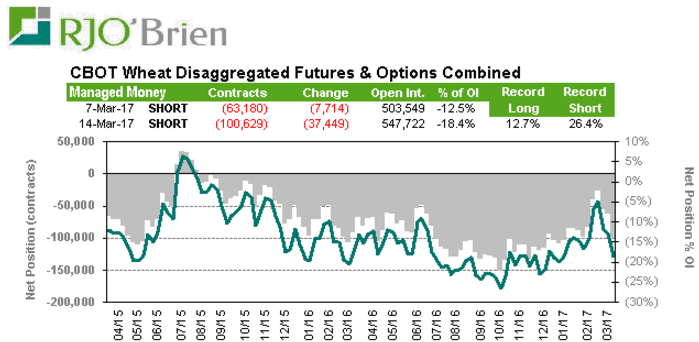 Blé Chicago : rien à faire, les fonds ont encore laché prise pour revenir vendeur massif dans le marché. Retour à un net short de 100k contrats