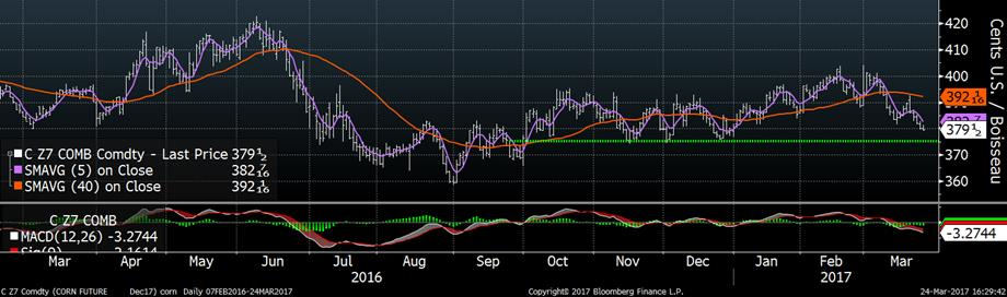 Prix du maïs sur décembre 2017